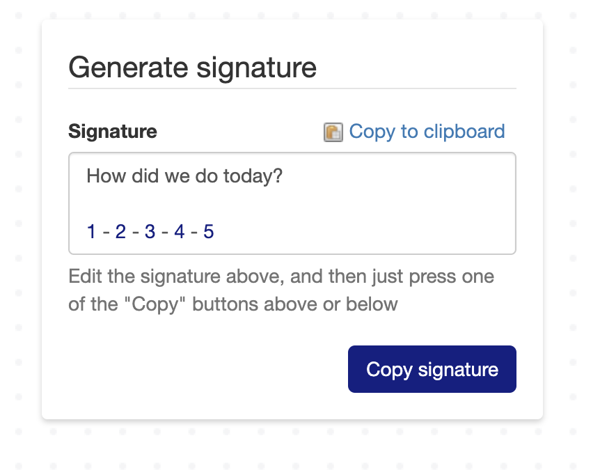 When someone clicks on a signature survey, we open a “blank” survey, pre-fill the score, and then they can answer the remaining questions.